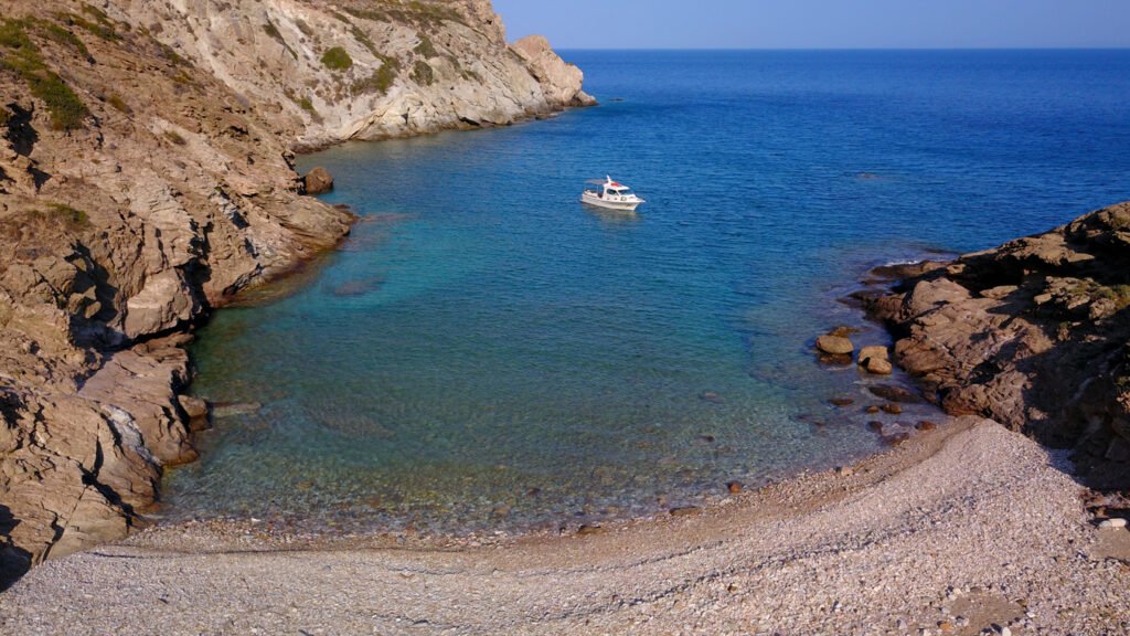 It has two small coves with sand,pebbles and turquoise waters